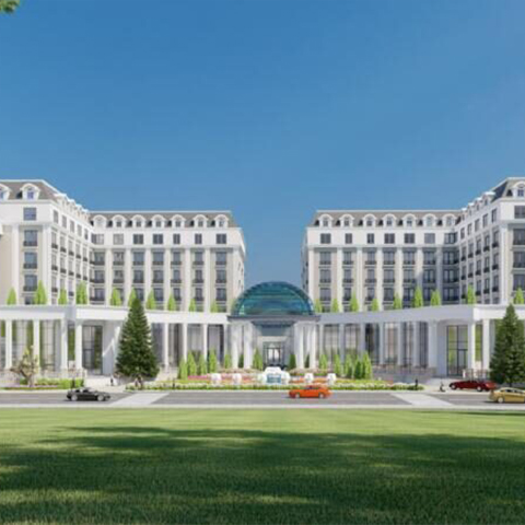The project is located at 19 Hung Vuong, on the route connecting the Central Square and Bao Dai Palace, planned into a commercial and service complex, including: commercial center, supermarket, office and apartment with 3 basements and 6 floors.