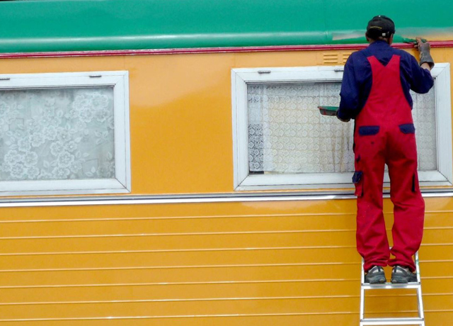 Dismantling works, painted houses