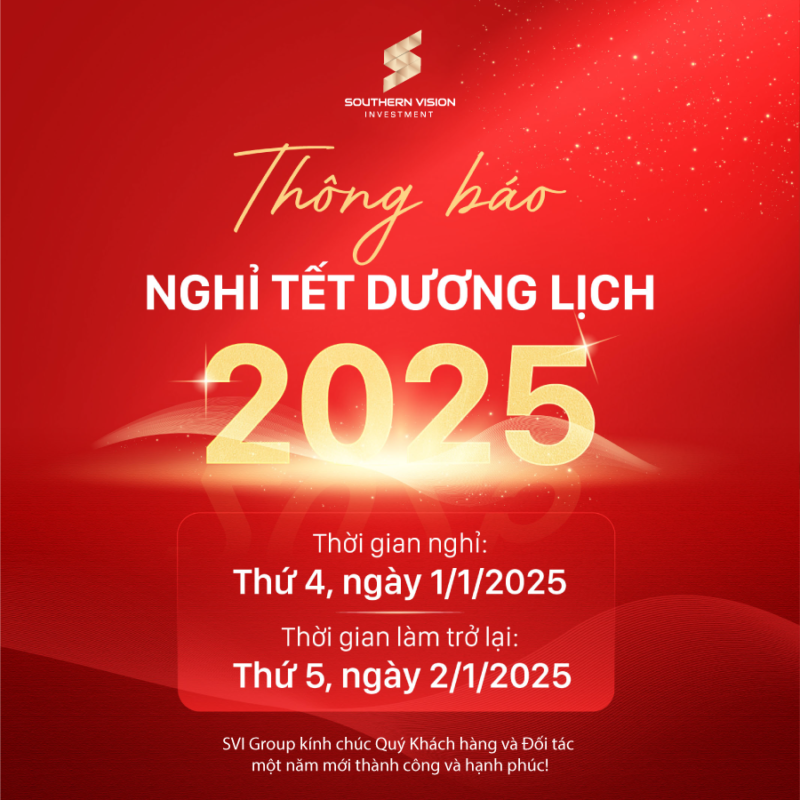 Nhân dịp Tết Dương Lịch 2025, SVI Group thông báo đến Quý Đối Tác và Cán Bộ Nhân Viên về lịch nghỉ Tết như sau:
